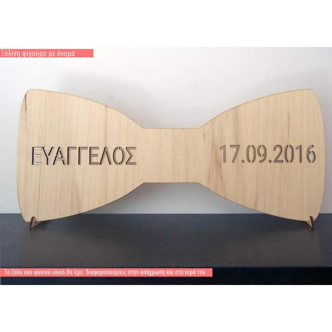 Ξύλινο μεγάλο παπιγιόν με όνομα