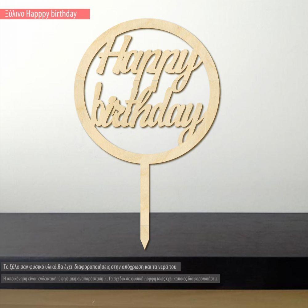 Ξύλινο στεφάνι με στήριξη, Happy birthday
