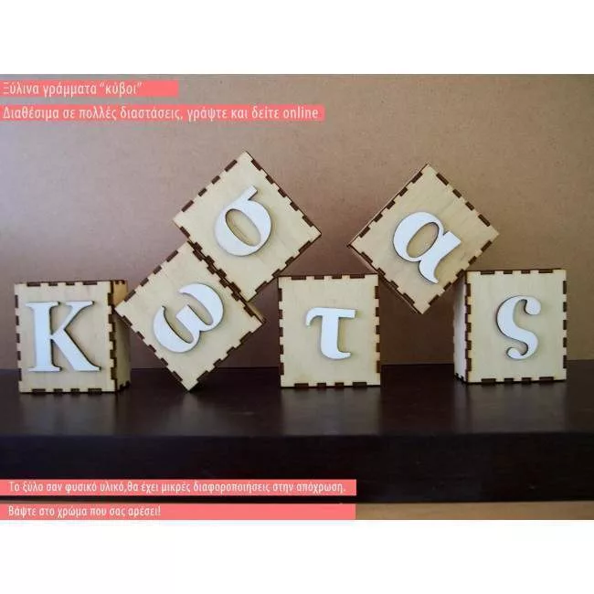 Ξύλινοι "κύβοι" με γράμματα κομμένα με laser.