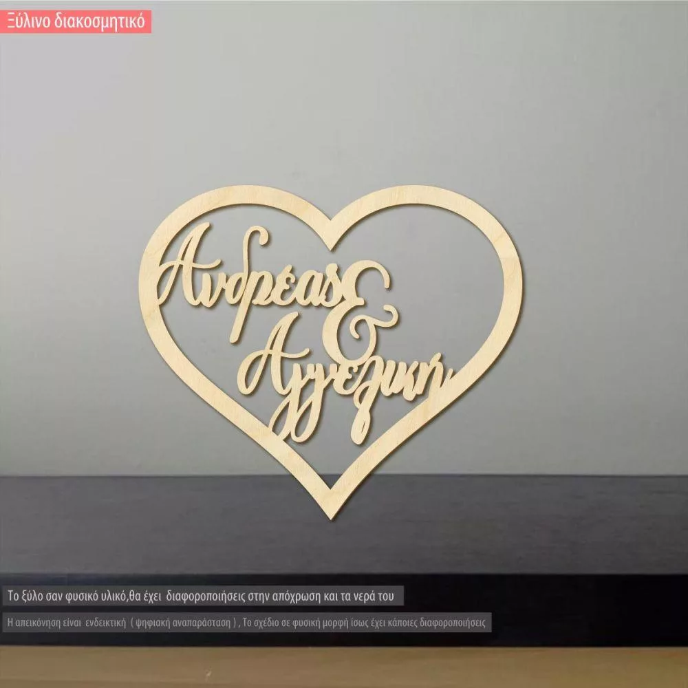 Ξύλινη διακοσμητική καρδιά με ονόματα από ξύλο 3-4 mm