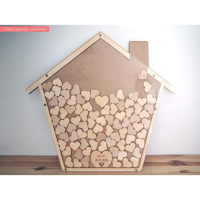 Ξύλινο ευχολόγιο Σπίτι με καρδιές