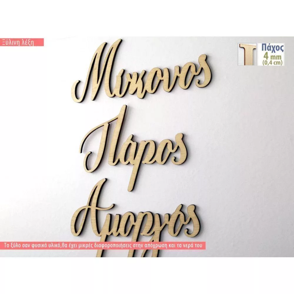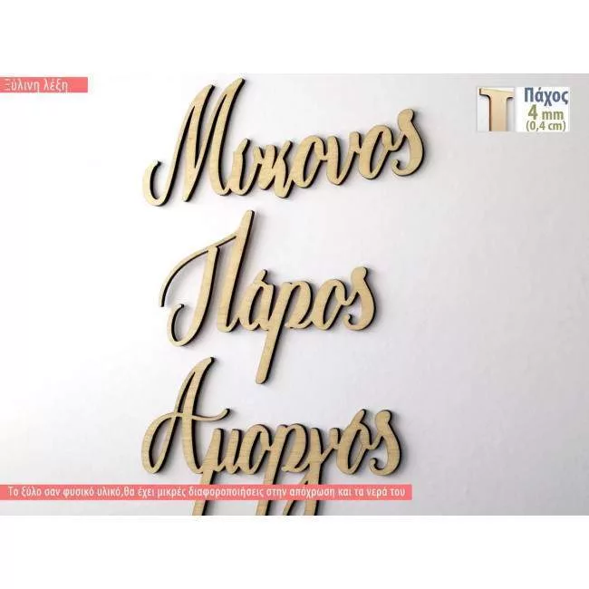 Ξύλινη λέξη, από ξύλο 3-4 mm, τέλεια κομμένη με laser.