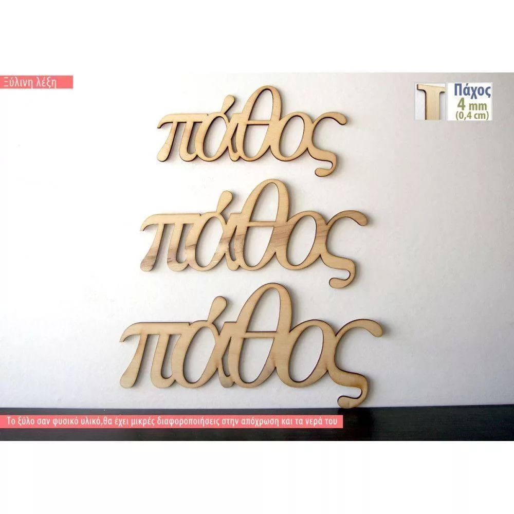 Ξύλινη λέξη, από ξύλο 3-4 mm, τέλεια κομμένη με laser.