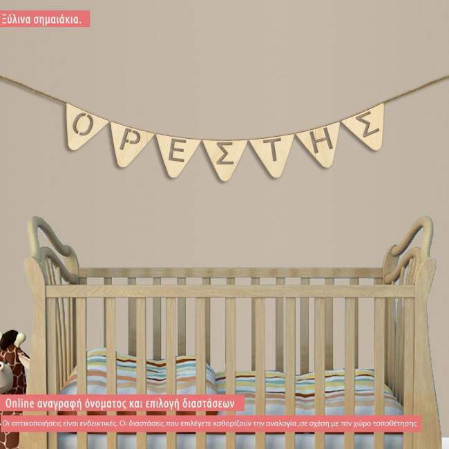Ξύλινα σημαιάκια με γράμματα από ξύλο 3 mm, κομμένα με laser - μια υπέροχη ιδέα για διακόσμηση δωματίου ή βάπτισης.