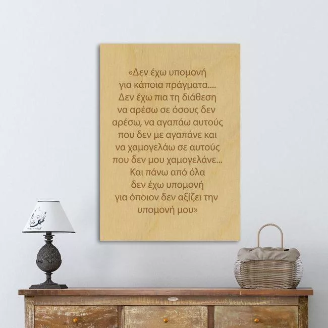 Ξύλινη πινακίδα Δεν έχω υπομονή