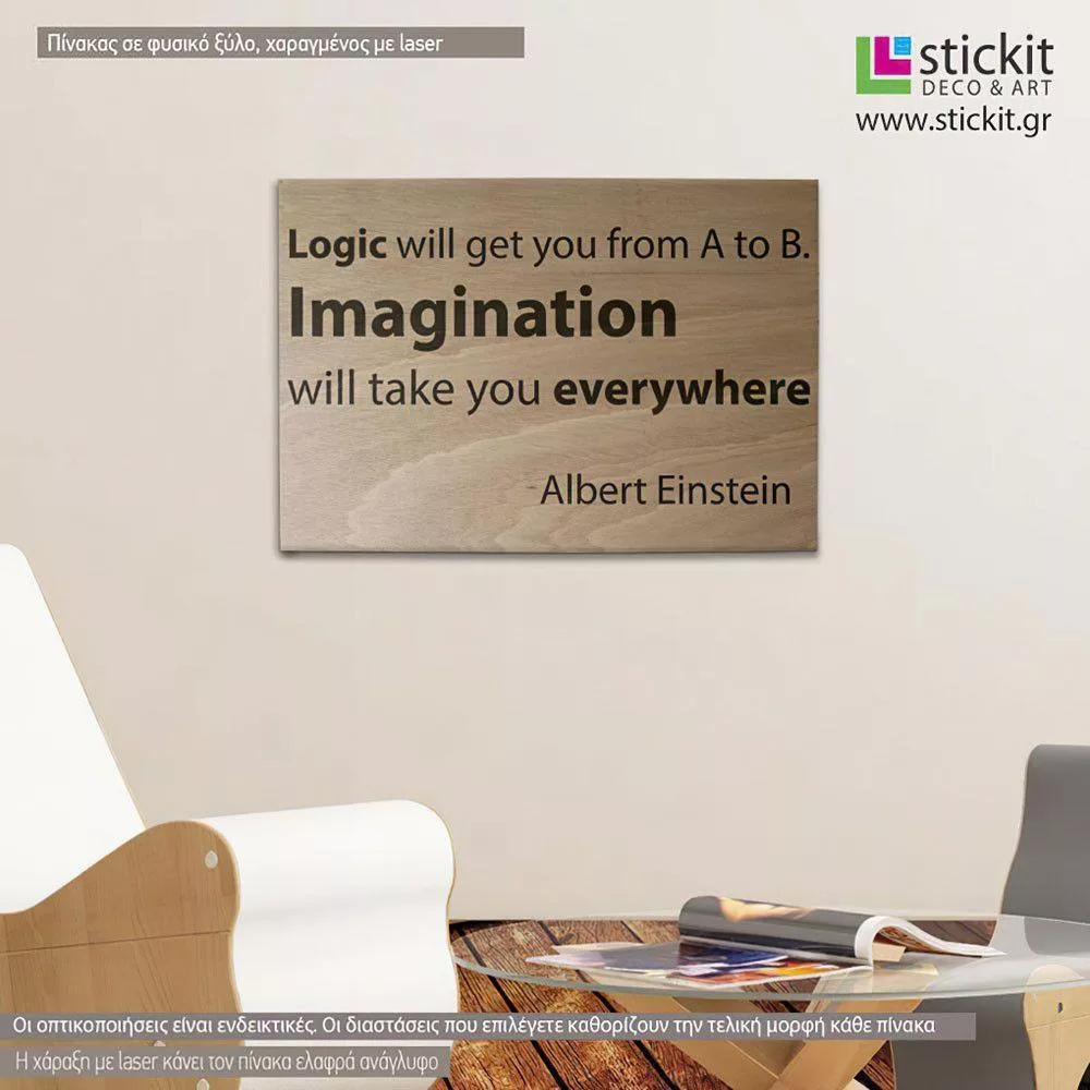 Ξύλινη πινακίδα Logic Vs Imagination