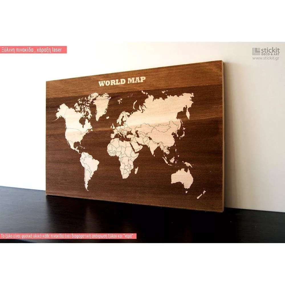 Ξύλινη πινακίδα Παγκόσμιος χάρτης ΙΙ