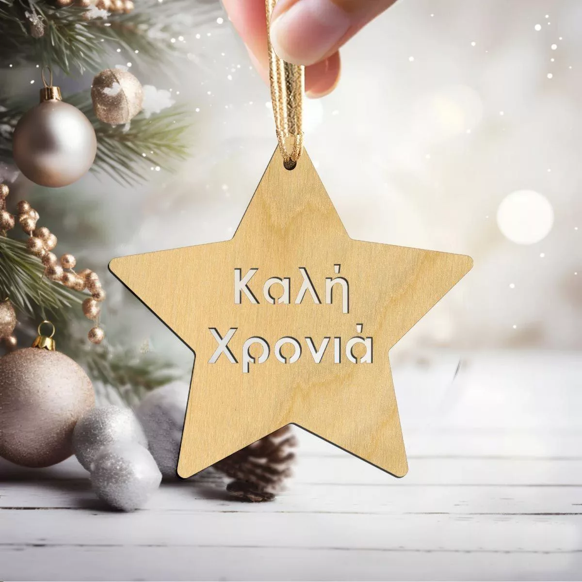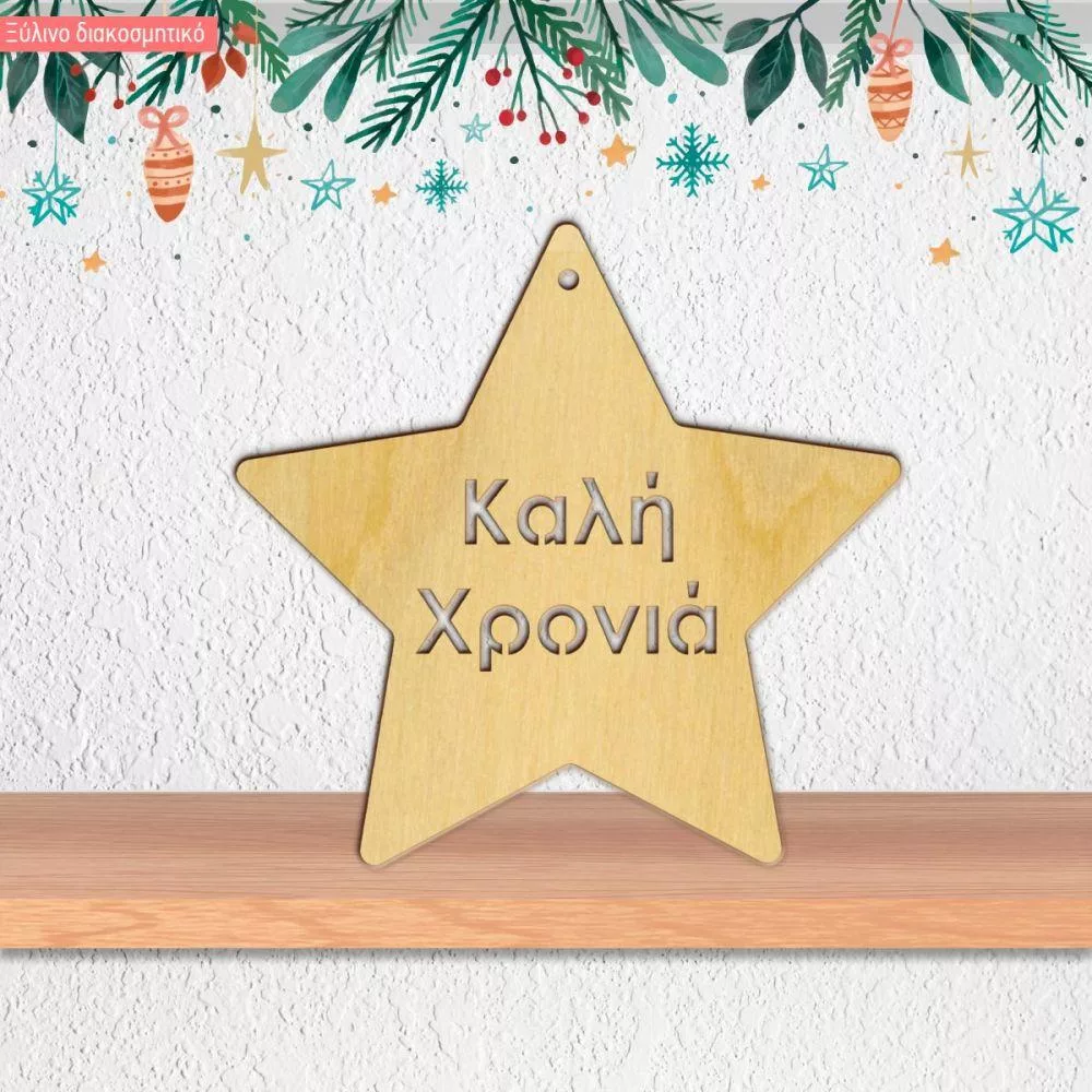 Ξύλινο γούρι Αστέρι Καλή χρονιά