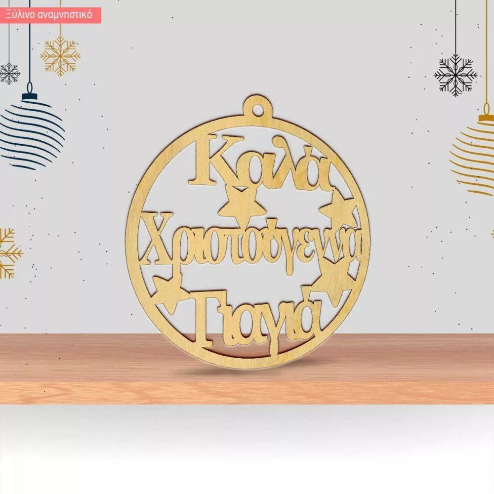 Ξύλινο γούρι Καλά Χριστούγεννα Γιαγιά