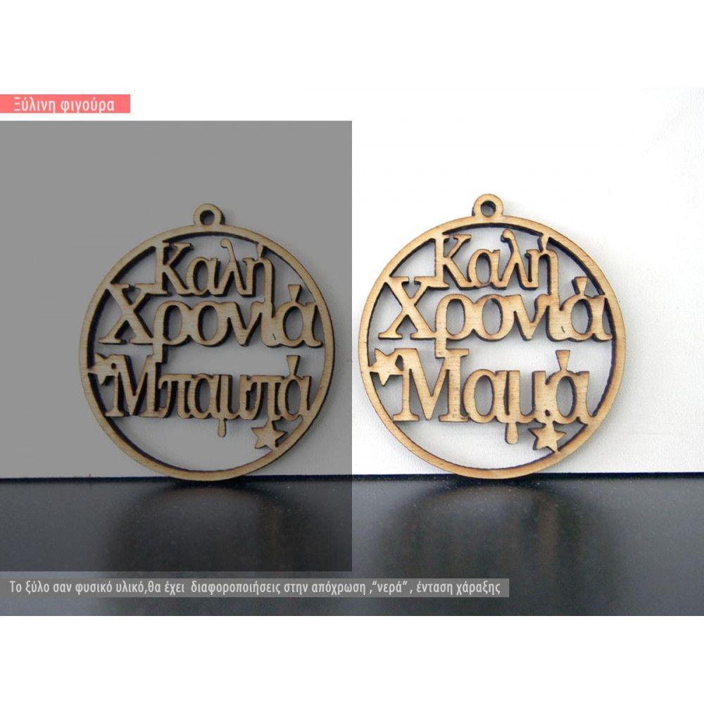 Ξύλινο γούρι Καλή Χρονιά Μαμά Μπαμπά