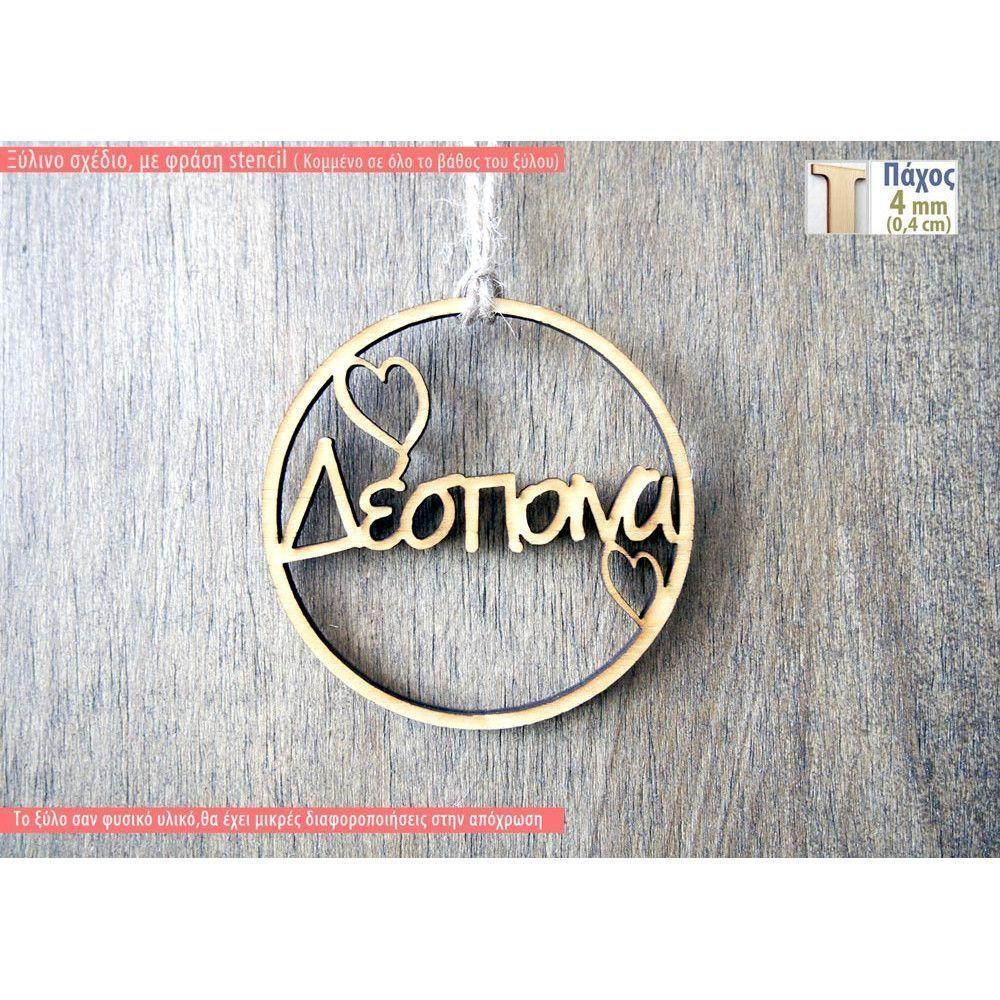 Ξύλινο γούρι με όνομα και καρδούλες