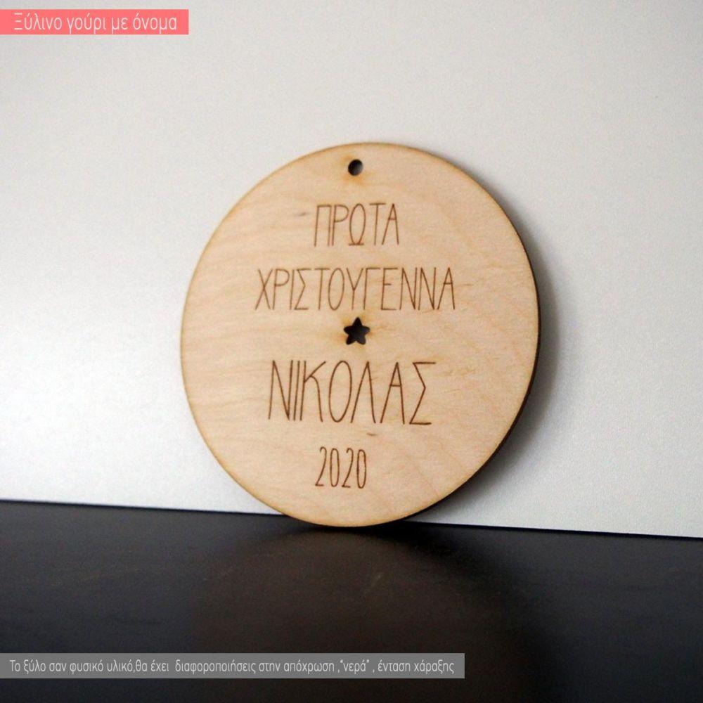 Ξύλινο γούρι Τα πρώτα μου Χριστούγεννα, προσωποποιημένο
