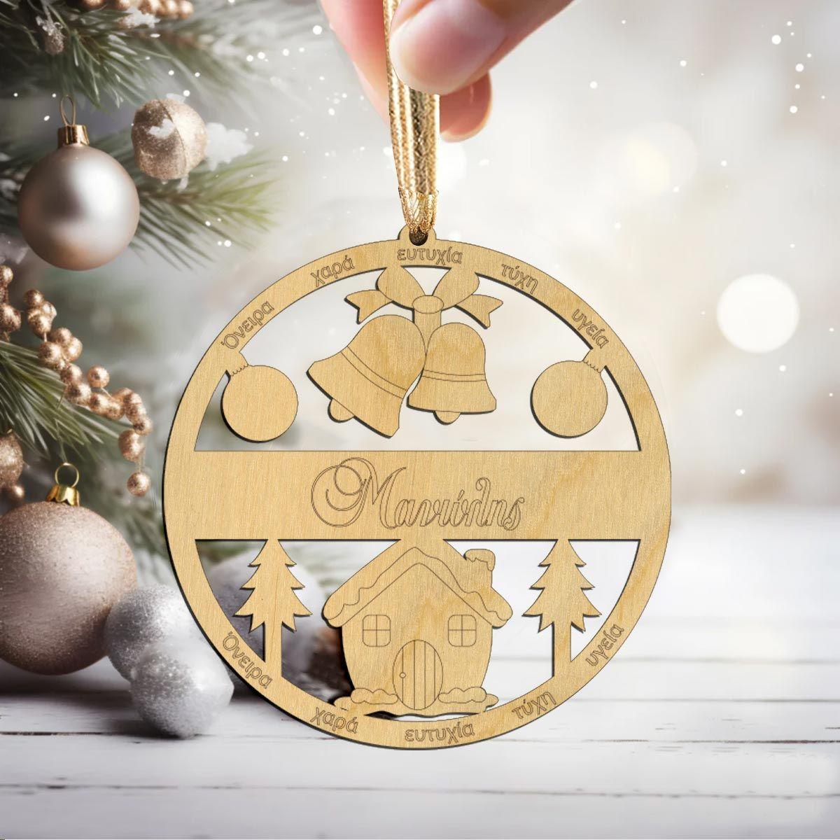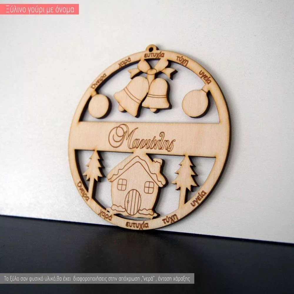 Ξύλινο χριστουγεννιάτικο γούρι με όνομα