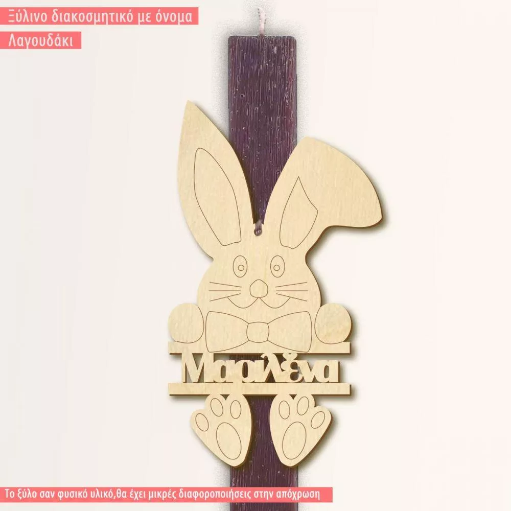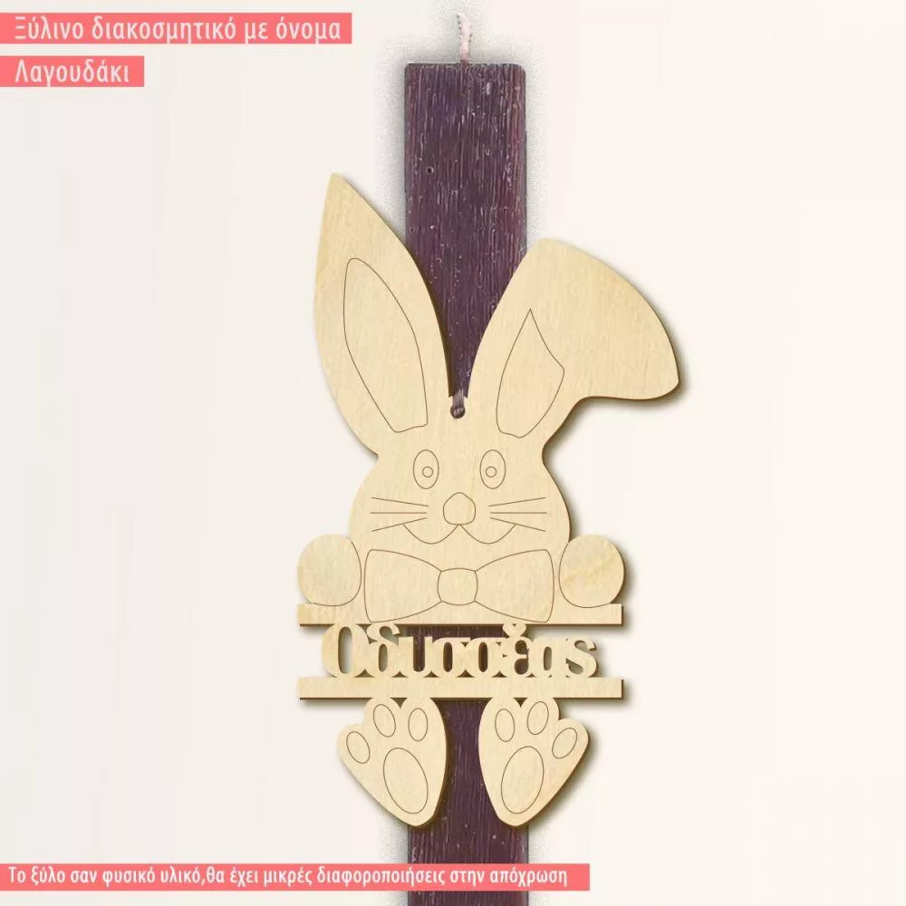 Ξύλινο Λαγουδάκι με όνομα για λαμπάδα