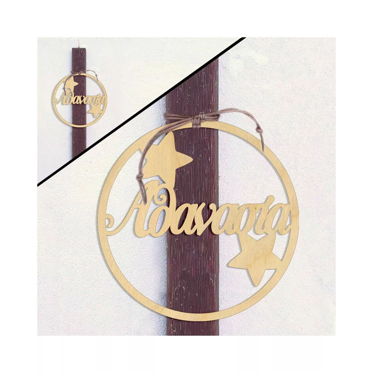 Προσωποποιημένος Ξύλινος Κύκλος με Όνομα & Αστέρια για Πασχαλινή Λαμπάδα