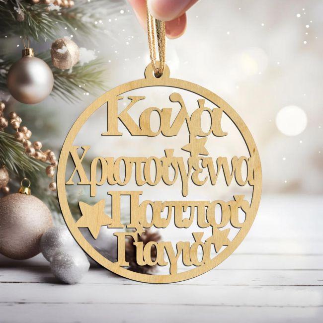 Ξύλινο γούρι Καλά Χριστούγεννα Παππού Γιαγιά