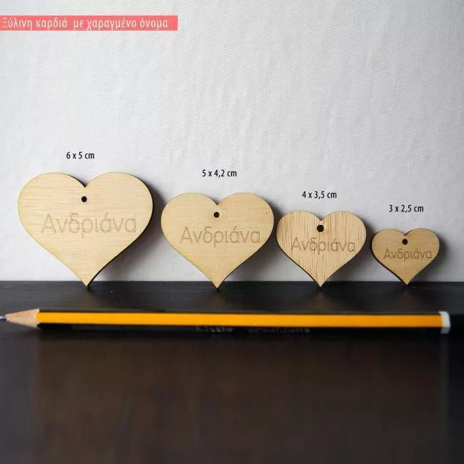 Ξύλινη Καρδιά με χαραγμένο όνομα διακοσμητική φιγούρα