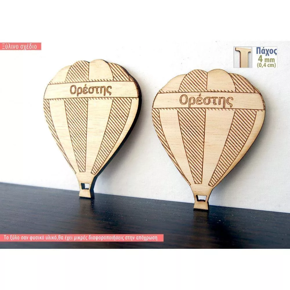 Ξύλινο Αερόστατο ριγωτό με όνομα διακοσμητική φιγούρα