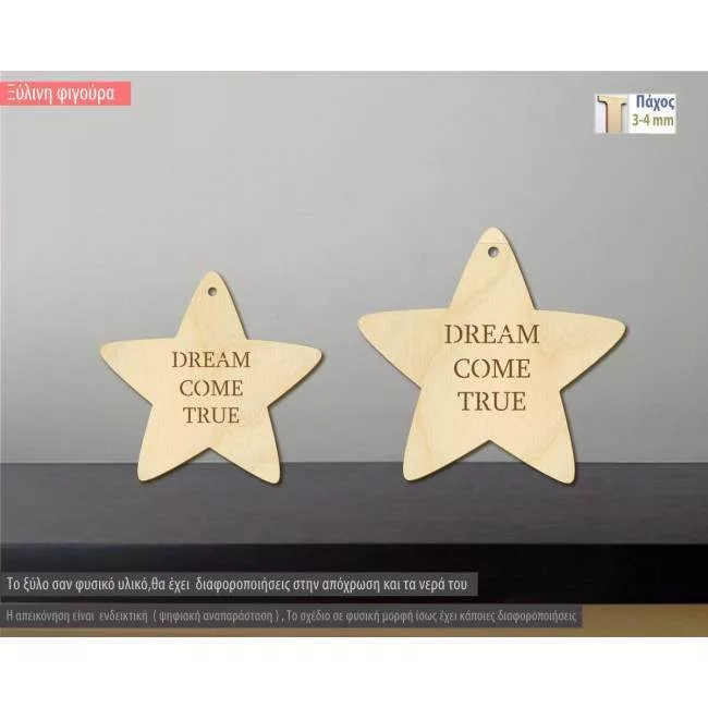 Ξύλινο αστέρι Dream come true, διακοσμητική φιγούρα