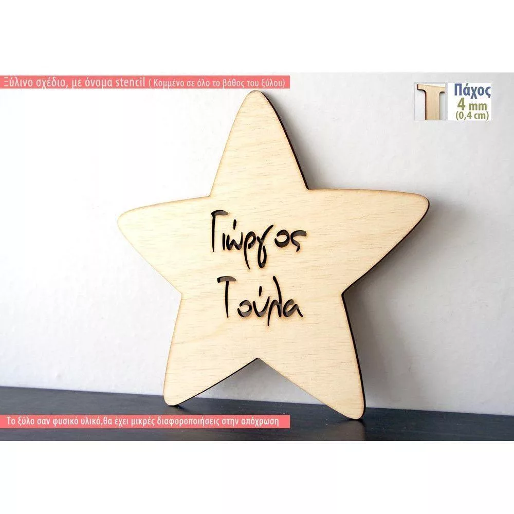 Ξύλινο Αστέρι με όνομα stencil, διακοσμητική φιγούρα