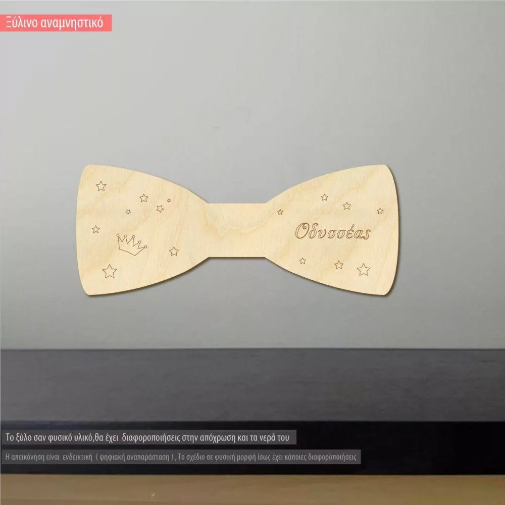 Ξύλινο Παπιγιόν με όνομα διακοσμητική φιγούρα