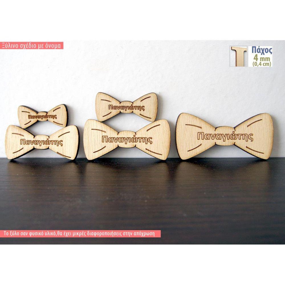 Ξύλινο Παπιγιόν με χαραγμένο όνομα διακοσμητική φιγούρα