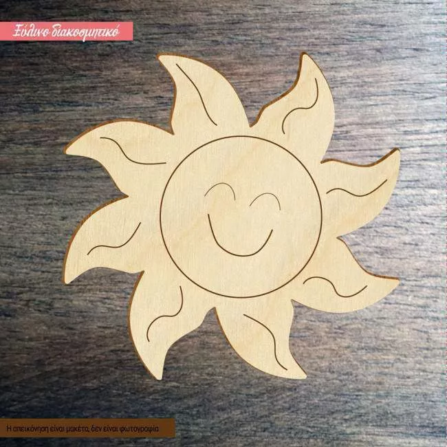 Ξύλινος Ήλιος χαμογελαστός διακοσμητική φιγούρα