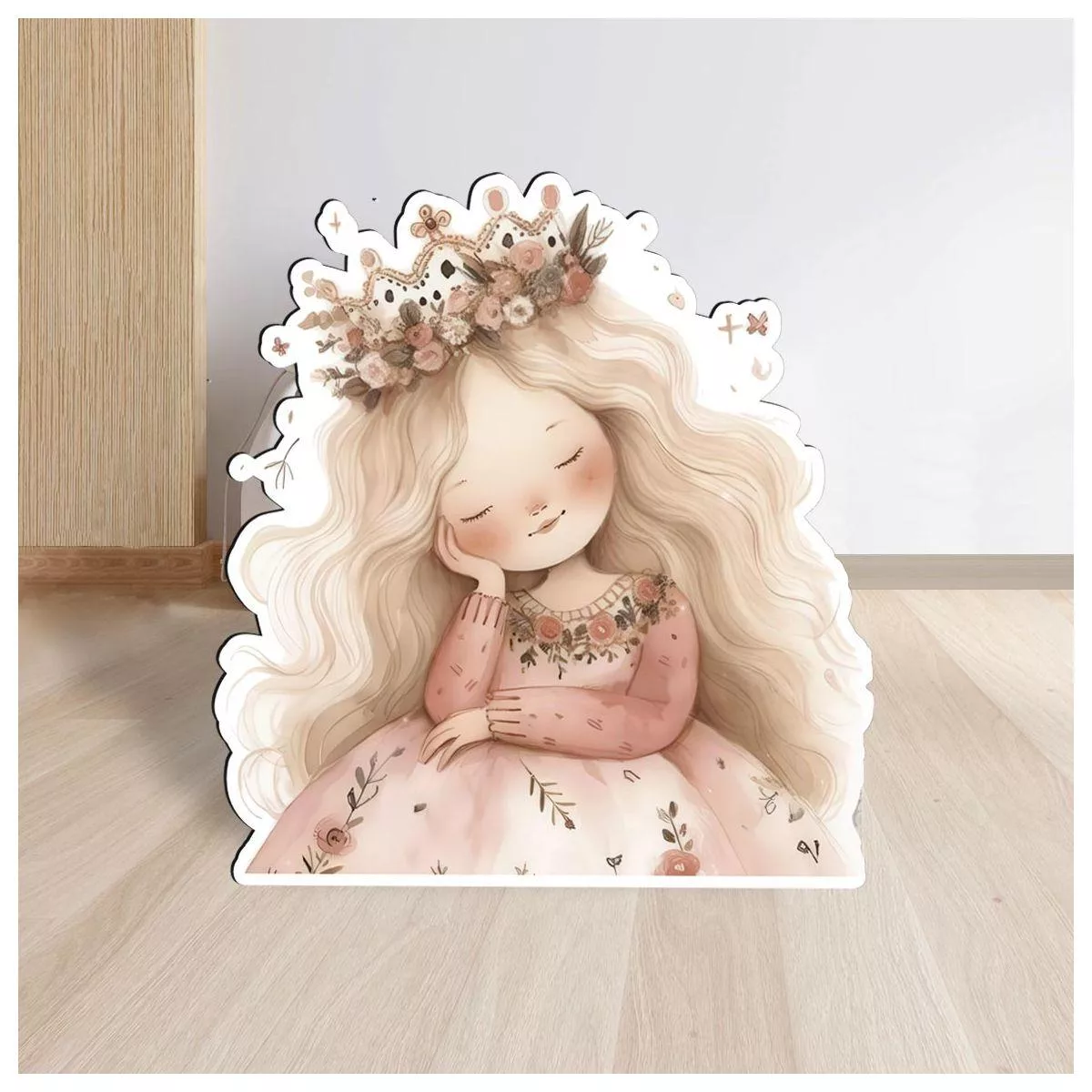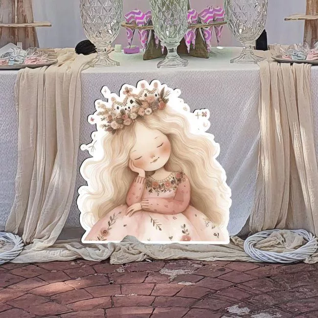 Γλυκιά Νεράιδα Ξανθιά Πριγκίπισσα με στέμμα, ξύλινη εκτυπωμένη φιγούρα