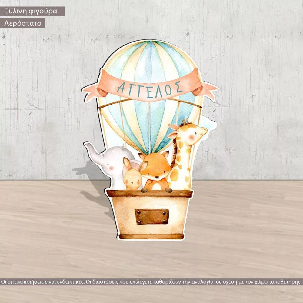 Αερόστατο με ζωάκια, ξύλινη φιγούρα εκτυπωμένη, προσωποποιημένη