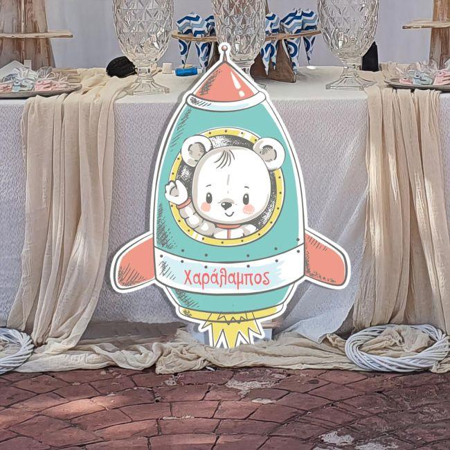Αρκουδάκι σε πύραυλο, ξύλινη φιγούρα εκτυπωμένη