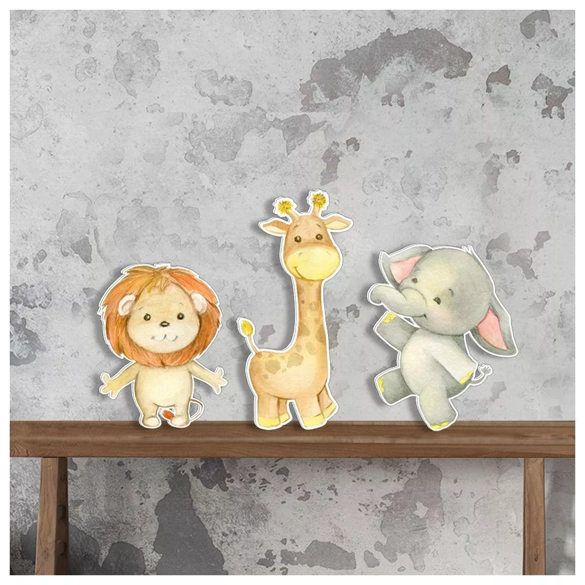 Ζωάκια του δάσους ξύλινες φιγούρες με λουλούδια watercolor, ελάφι, αλεπού, κουκουβάγια