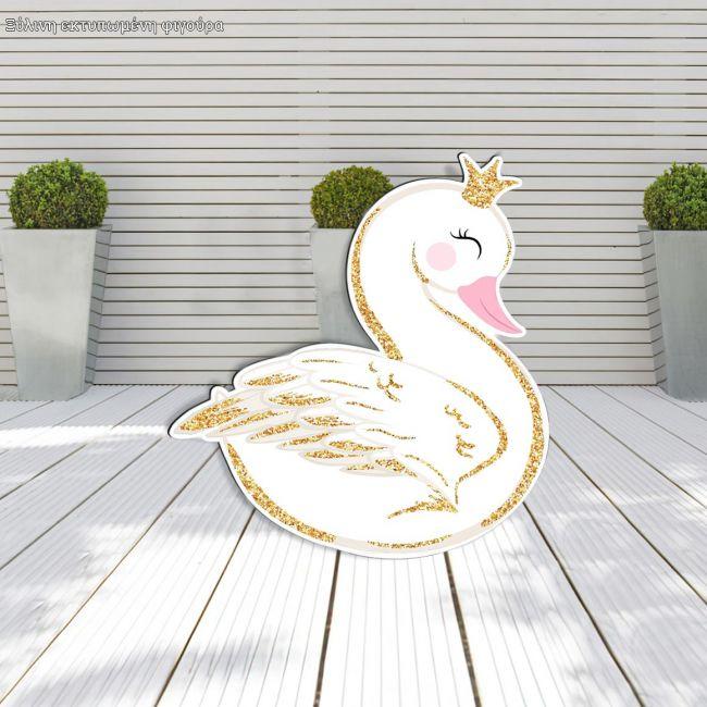 Elegant swan, Κύκνος με χρυσές λεπτομέρειες II, ξύλινη φιγούρα εκτυπωμένη