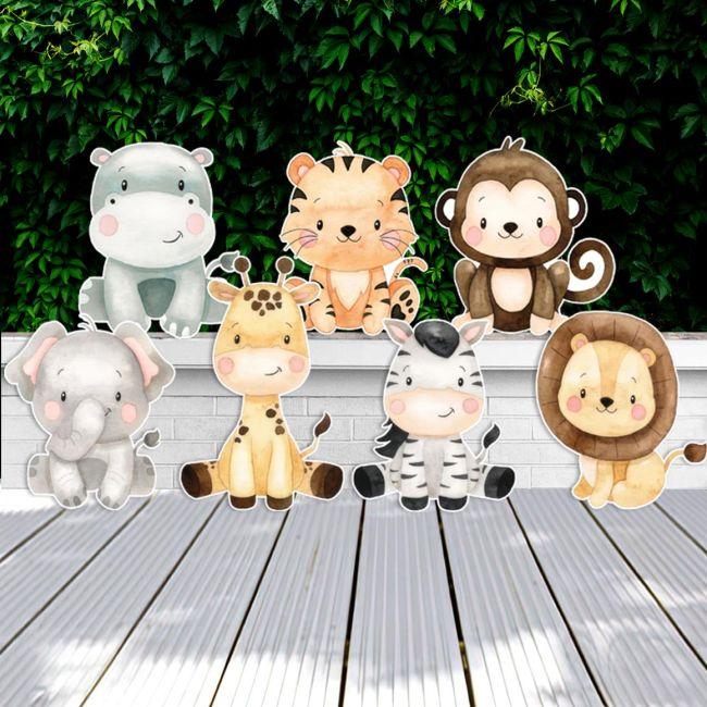 Ξύλινες φιγούρες εκτυπωμένες σετ, 7 ζωάκια σαβάνας καθιστά