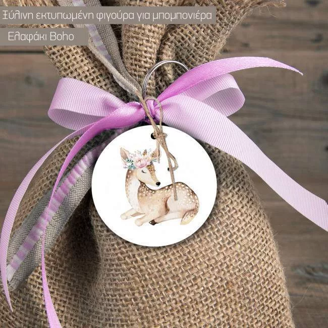 Ξύλινη φιγούρα για μπομπονιέρα κυκλική Ζωάκια Boho