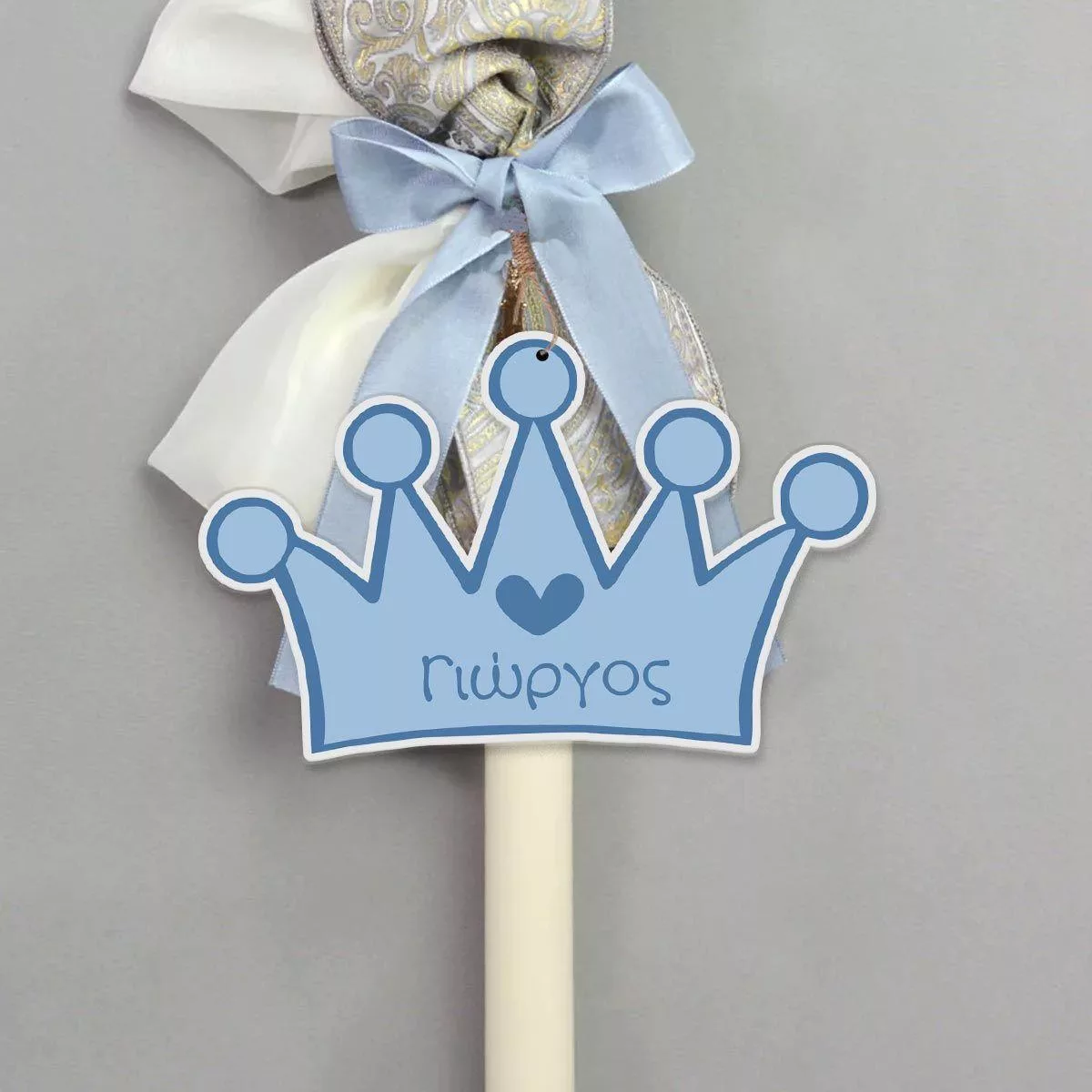 Ξύλινη τυπωμένη κορώνα για αγοράκι, με όνομα