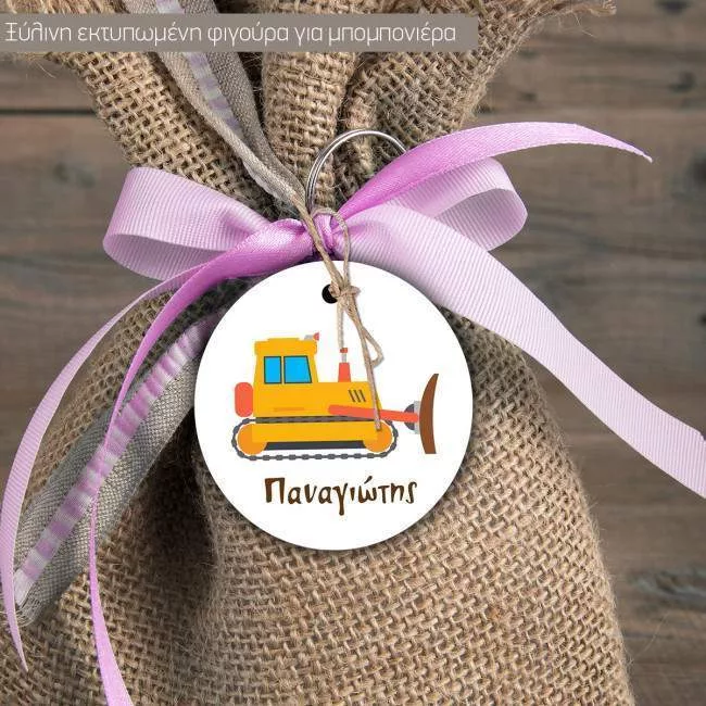 Ξύλινη φιγούρα για μπομπονιέρα κυκλική Μπουλντόζα