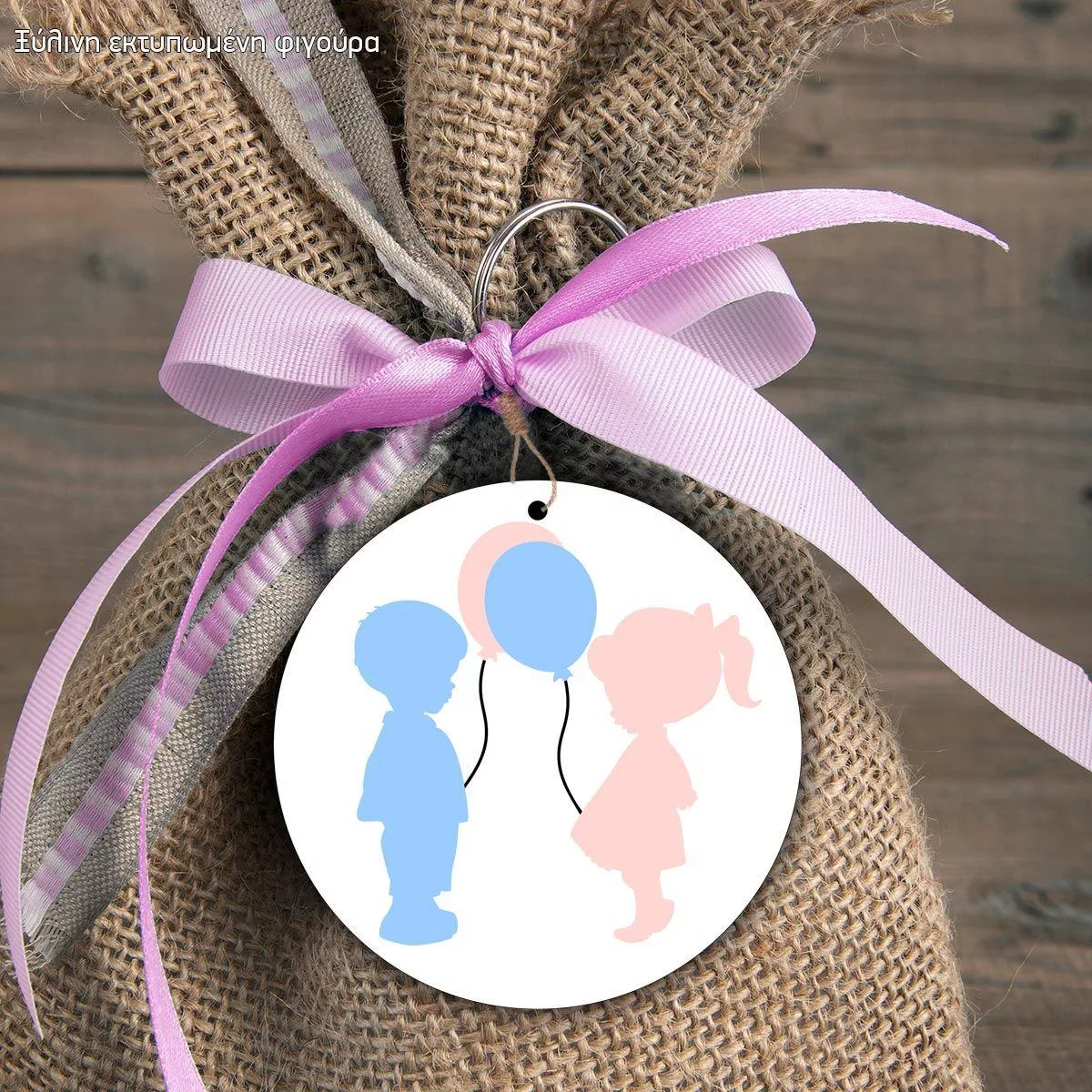 Ξύλινη φιγούρα για μπομπονιέρα, Αγόρι Κορίτσι μπαλόνια