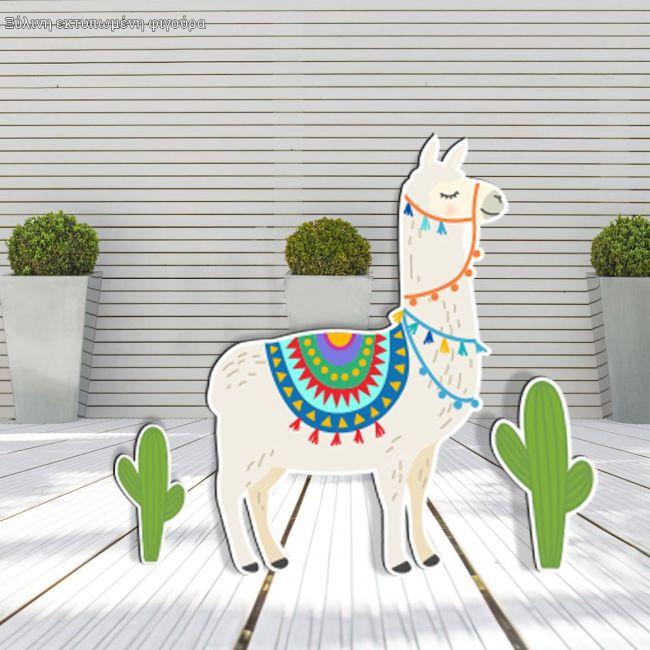 Χαρούμενο λάμα, ξύλινη φιγούρα βάπτισης εκτυπωμένη