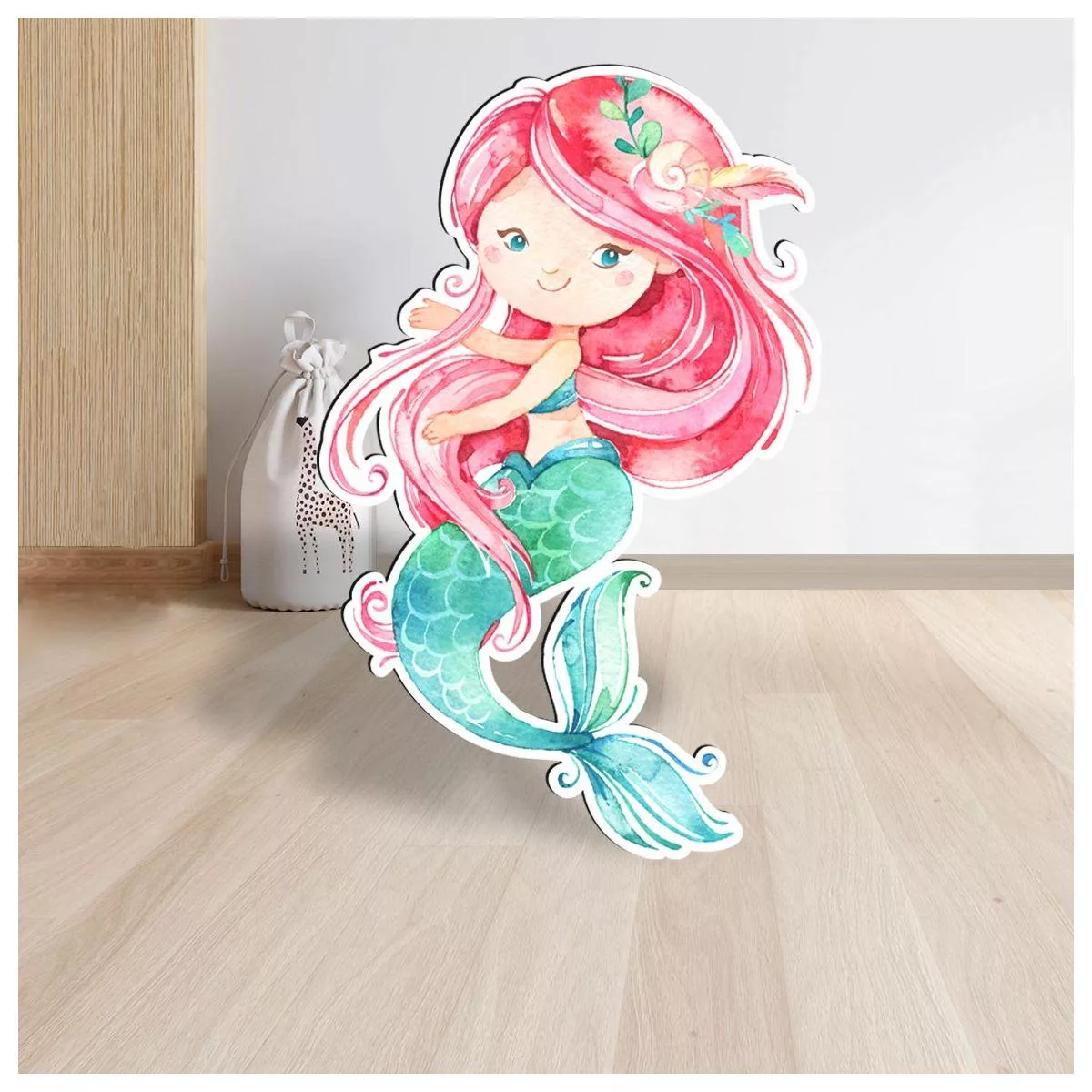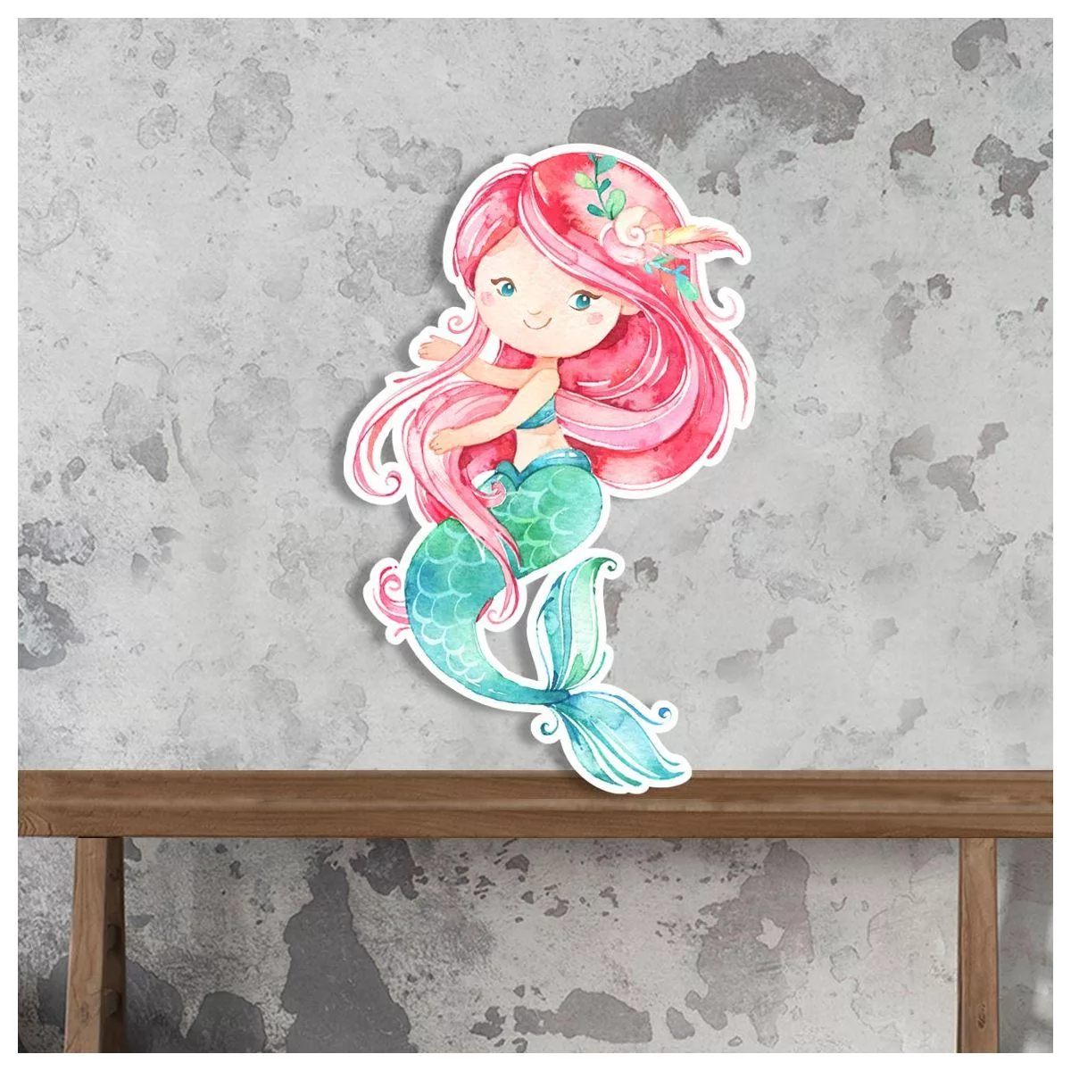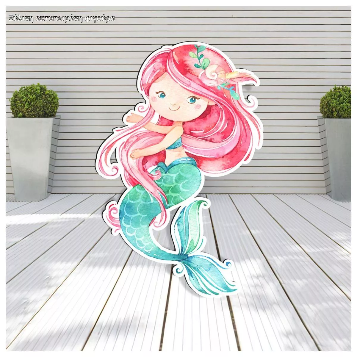 Γοργόνα ζωγραφιστή σκούρα μαλλιά, ξύλινη φιγούρα εκτυπωμένη