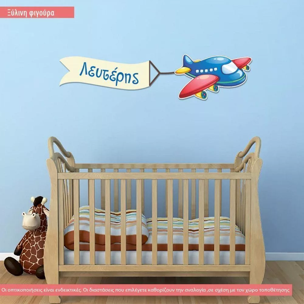 Αεροπλάνο με banner και όνομα ξύλινη φιγούρα