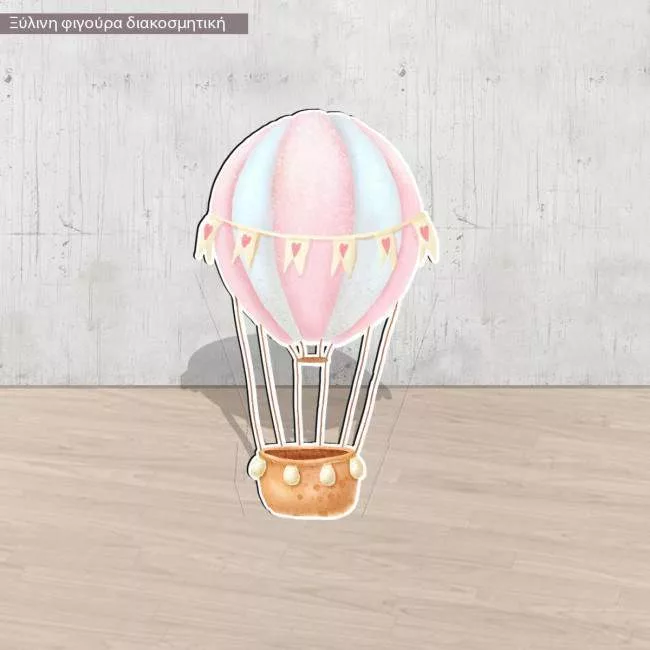 Hot air baloon vintage blue ξύλινη φιγούρα εκτυπωμένη, αερόστατο