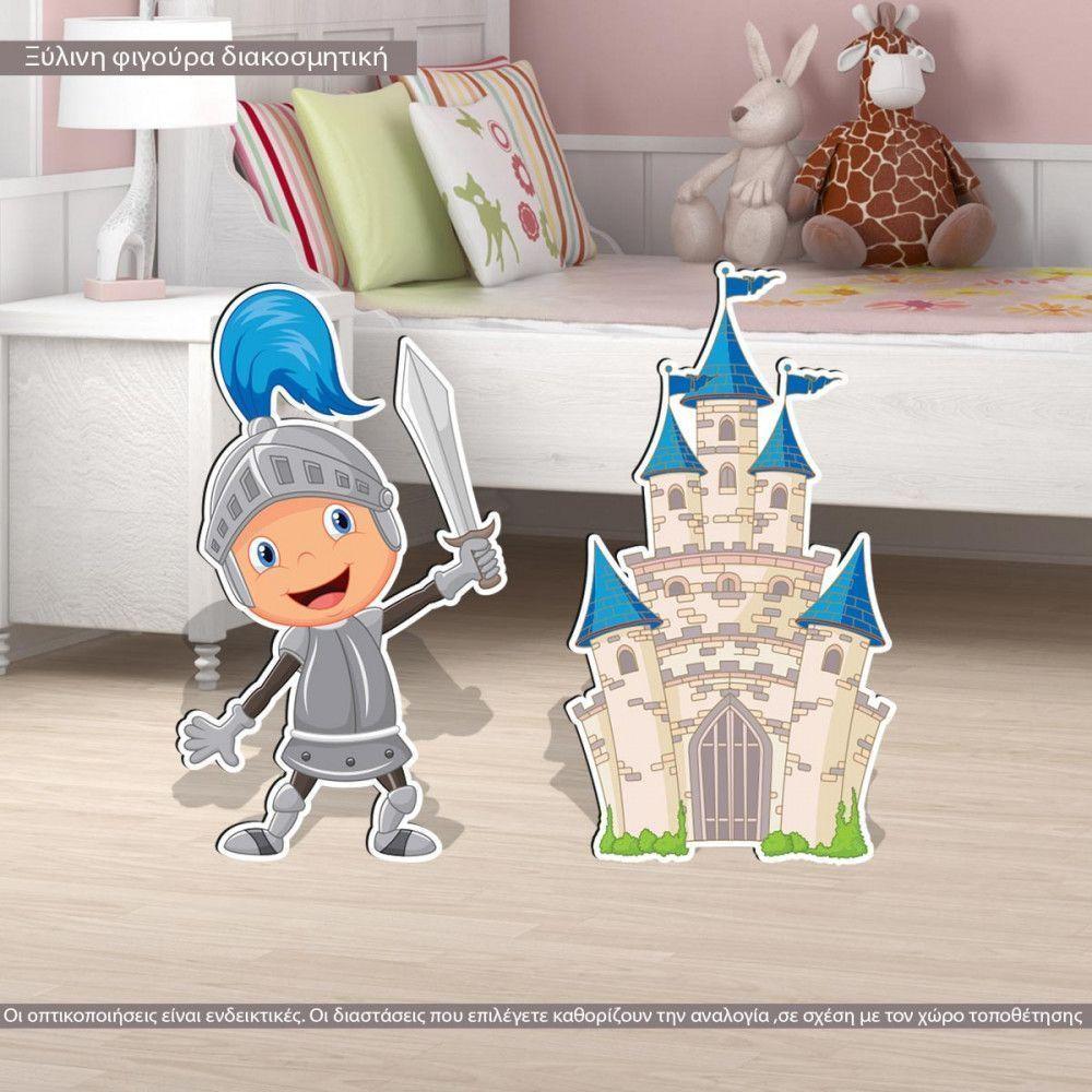 Ιππότης και κάστρο blue ξύλινες φιγούρες διακοσμητικές