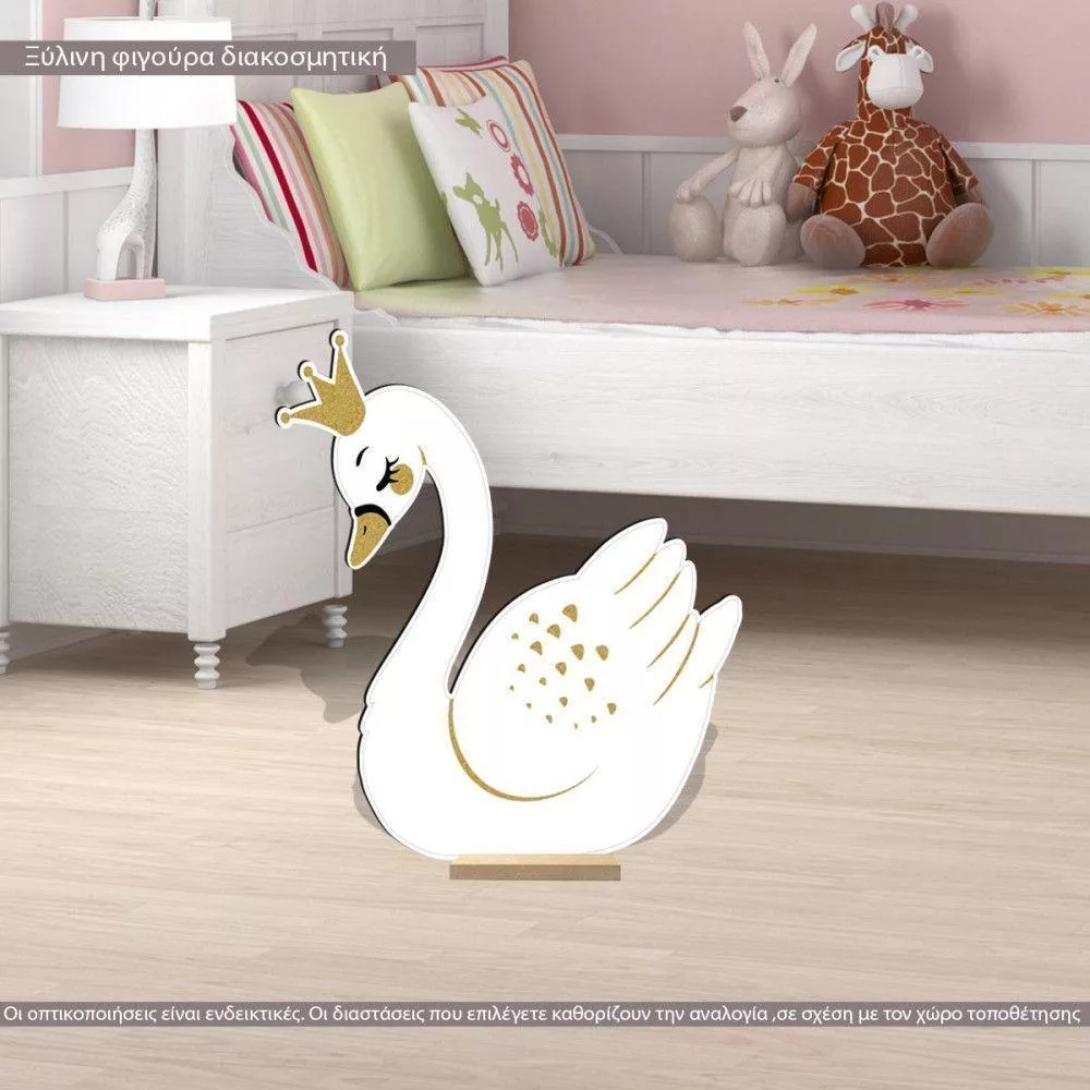 Ξύλινος κύκνος με χρυσές λεπτομέρειες, η ιδανική διακοσμητική φιγούρα για θεματική βάπτιση
