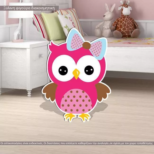 Κουκουβάγια girly ξύλινη φιγούρα εκτυπωμένη
