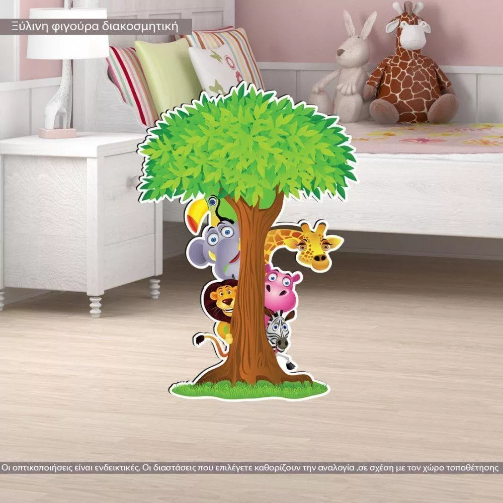 Κρυφτούλι με το δέντρο ξύλινη φιγούρα διακοσμητική εκτυπωμένη