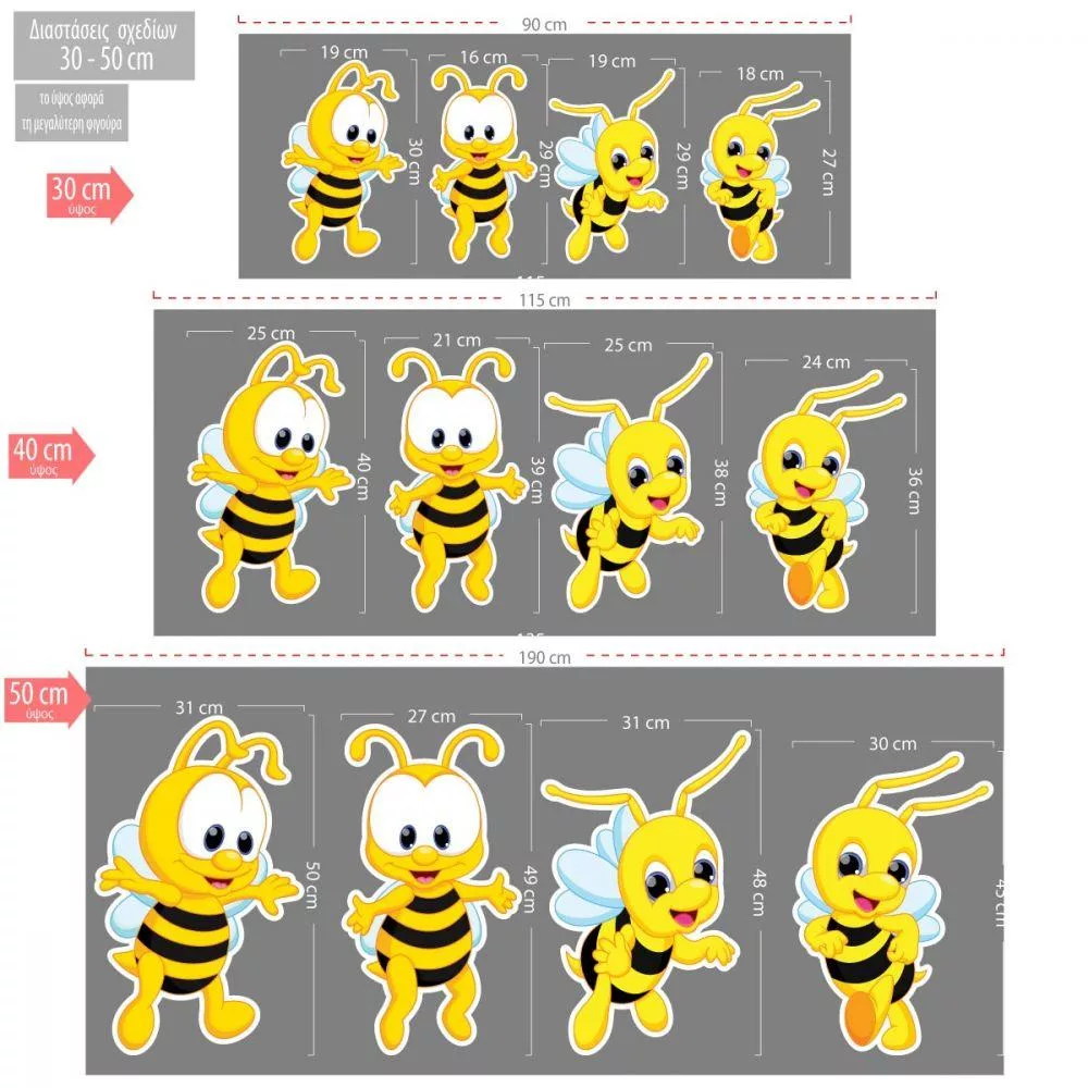 Δείτε τις εικόνες για τις διαστάσεις ανά μέγεθος κάθε φιγούρας