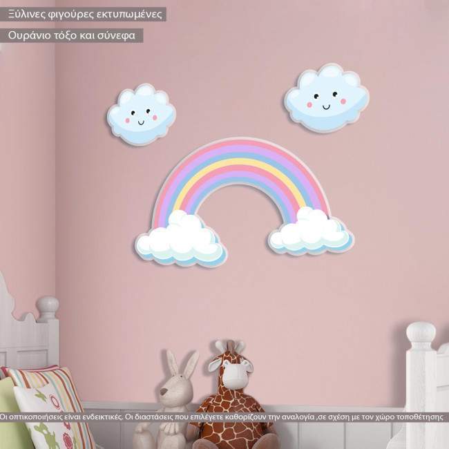 Ουράνιο τόξο και σύννεφα σετ ξύλινες φιγούρες εκτυπωμένες