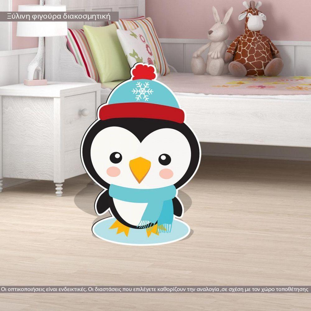 Winter penguin ξύλινη φιγούρα εκτυπωμένη, πιγκουίνος