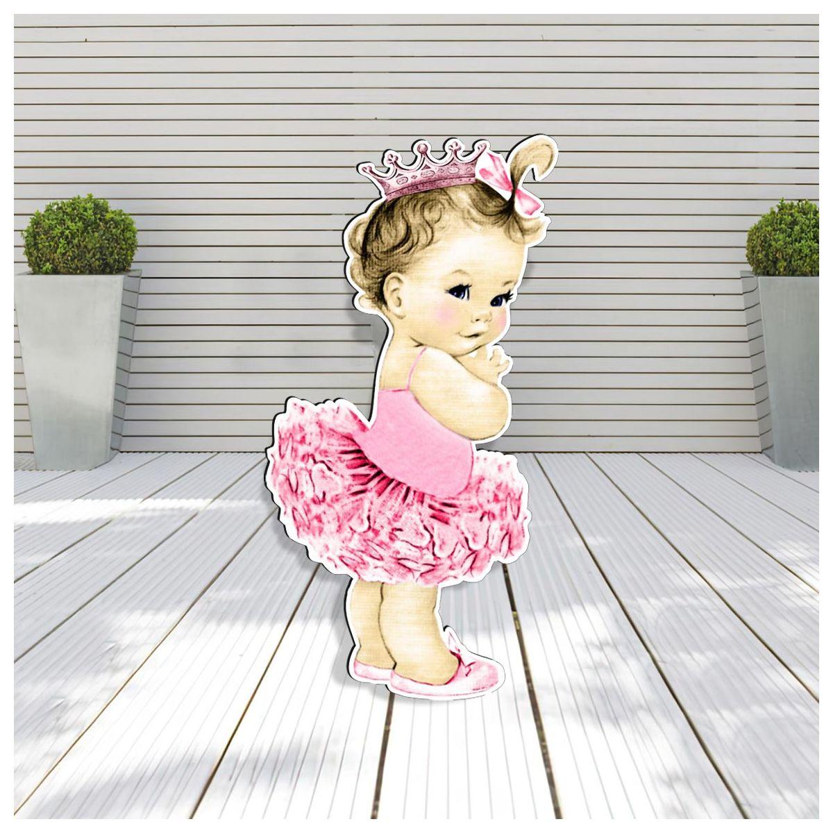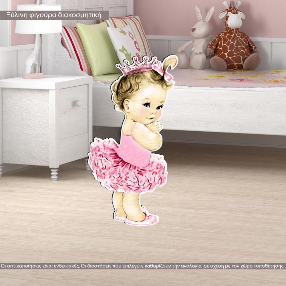 Χαριτωμένη μπαλαρίνα ξύλινη φιγούρα διακοσμητική εκτυπωμένη
