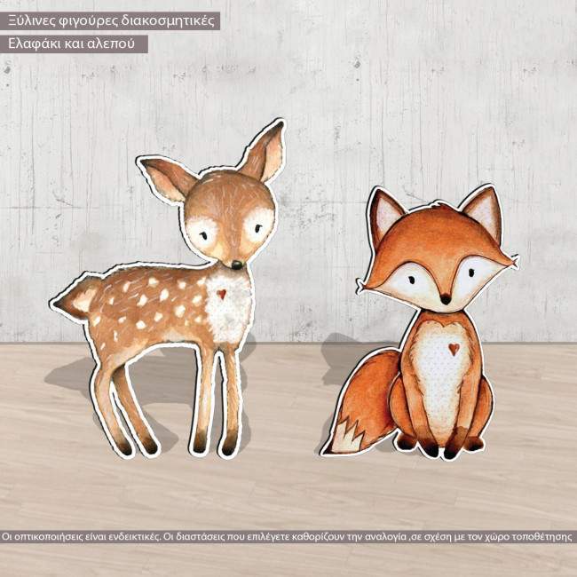Ελάφι και αλεπού watercolor σετ 2 ξύλινες φιγούρες εκτυπωμένες